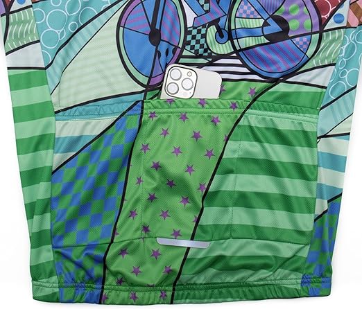 • [ Convenient Pockets & Reflective]:This cycling shirt is with the full zip in the front and the 3 rear pockets make it convenient to store your item like phone, food or water bottle.The reflective stripes around the pocket makes you highly visible at night and in low light environment,more safe. Italian ink thermal transfer, The printed pattern is clear and the color is bright